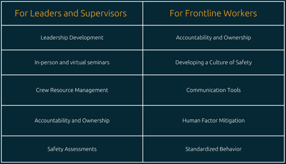 In high-consequence industries, the safety of workers and our environment should be of highest importance. CAVU has made it their mission to support industry-leading organizations in fulfilling their most central obligation: keeping team members and the environment in which they operate safe. Through superior leadership training, CAVU optimizes performance and eliminates risk by addressing the most common human and operational vulnerabilities: human factors, leadership, communication, decision making, teamwork, and situational awareness.